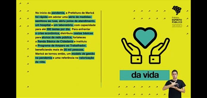 Criado para homenagear pessoas e instituições que se destacaram em ações públicas no país, o prêmio Espírito Público em sua terceira edição divulgou, nesta terça-feira (15/12), em uma cerimônia virtual pelo YouTube comandada pela jornalista Marina Person, os destaques em várias categorias. Pelas políticas adotadas, pelo engajamento e a mobilização de servidores e servidoras no combate aos efeitos da pandemia do novo coronavírus, a Prefeitura de Maricá foi uma das duas instituições públicas homenageadas de todo o país com a Medalha Espírito Público.